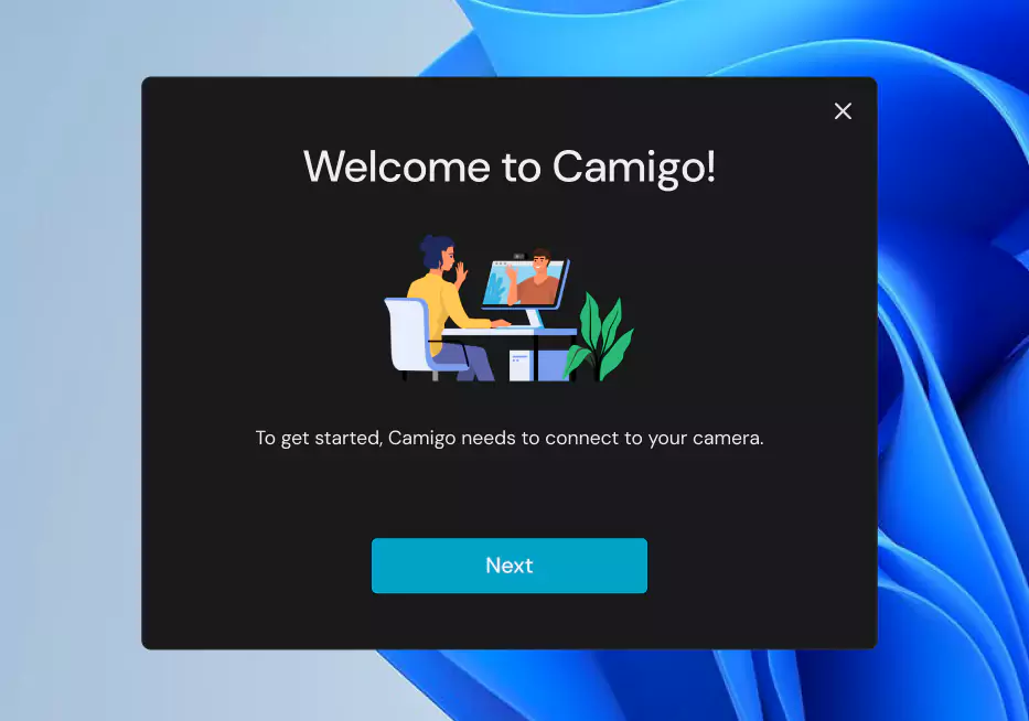 Starten Sie Ihre Video-Chat-App, wählen Sie Camigo als Ihre Webcam und beginnen Sie mit dem Chatten.
