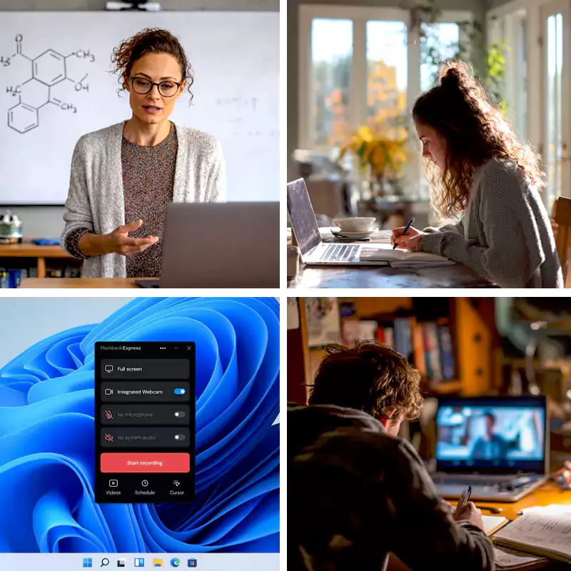 With Flashback Express, you can quickly record your screen, your webcam, or both to create clear, engaging video lessons for students.